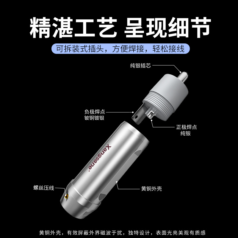 These pure silver RCA audio connectors feature a detachable design, making installation and maintenance easy. In terms of sound quality, the pure silver RCA connectors deliver a more solid and transparent sound with a wider, more spacious soundstage.